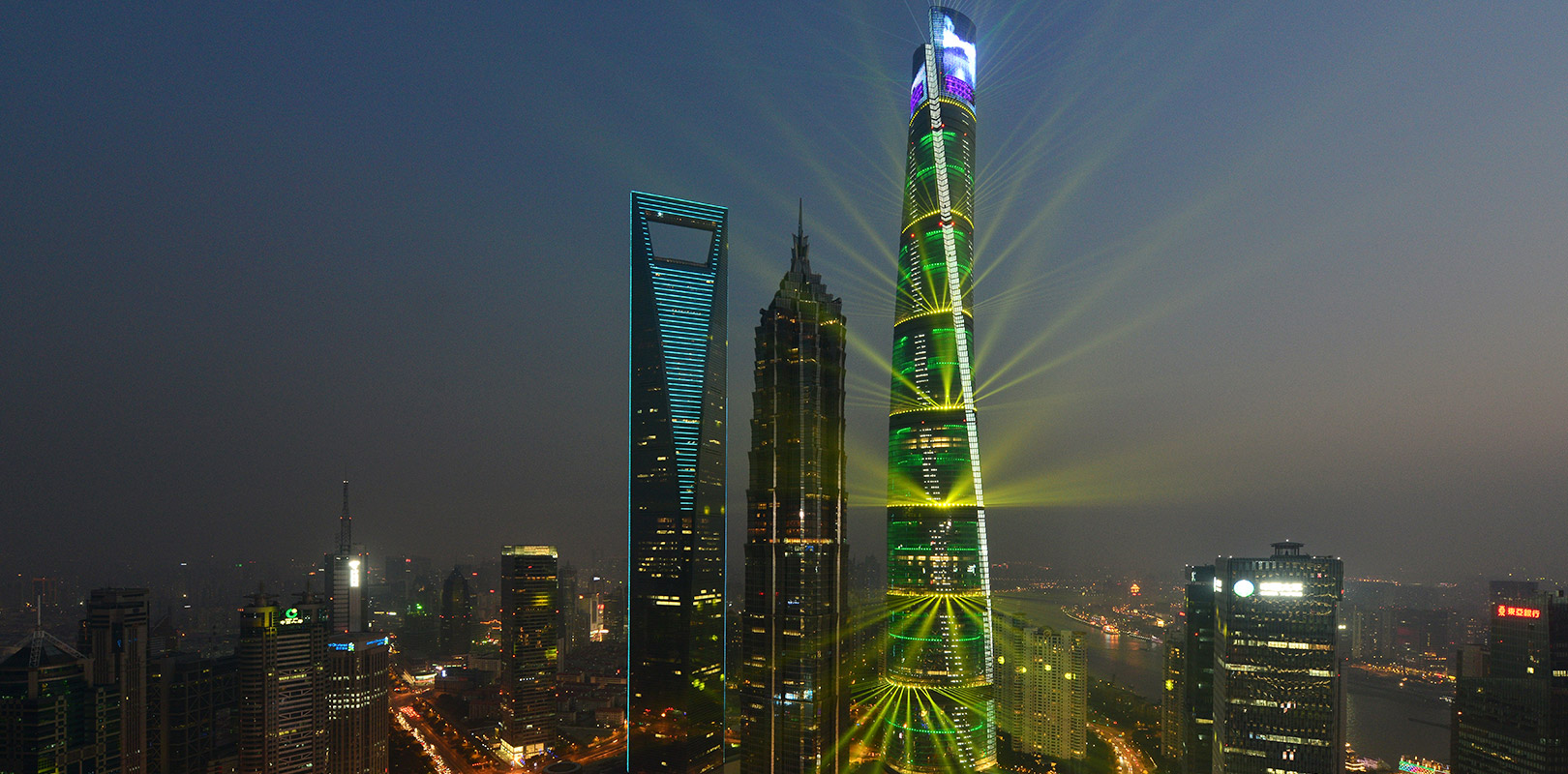 上海中心建筑總高度632米,采用特殊的雙層倒懸掛旋轉幕墻建筑結構,外墻泛光照明燈具數量之龐大、控制系統之復雜均為國內首例。 該工程共選用了10多種LED燈具,總量達5萬余套,其中包括面積約11000平方米的塔冠媒體屏,該屏目前也是世界上最高、面積最大的LED媒體屏。柏年針對超高建筑體特殊的室外環境研發了全新的戶外燈具,充分運用BIM系統的優勢,確保了在600米高空溫度低風力大的環境中,燈具正常運行