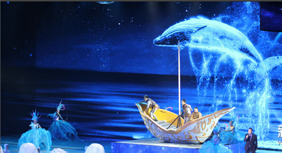 相比于到場明星的光輝璀璨,電影節閉幕式的舞臺亮化同樣是炫耀奪目,在儀式一開始,大型歌舞開場表演《追夢北京》為雅安地震災區祈福,為雅安加油,同時結合舞臺亮化的LED顯示屏也給了觀眾美輪美奐的視覺享受,引人入勝。舞臺上的LED顯示屏播放的畫面融為一體,跟隨音樂呈現的是一片平靜的海洋,月兒高掛,懸掛的LED球形屏如同星空的明珠星光熠熠,海洋生物們翩翩起舞的祥和場景,突然之間,風云變幻,電閃雷鳴,海面也變得洶涌波濤,而追夢少年們在飄搖的船帆上穿過風雨,最終迎來了雨后天晴,到達夢想彼岸,LED顯示屏上明媚的陽光照射著中國大地,顯得生機勃勃,春意盎然,一幅幅中國山川錦繡畫卷鋪開在大家眼前,從長城到故宮,畫面恢弘磅礴,隨著表演的結束,,此次盛會的終極大獎“天壇獎”獎杯隨后也閃亮呈現。整個表演預示著雅安災區在災難過后,終究會回歸幸福,在困境中像太陽一樣冉冉升起,而中國也會更強大起來。