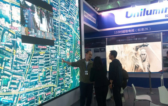 此次展會上洲明展出適用于安防監控、公共安全、智慧城市、交通指揮等諸多應用環境的小間距LED顯示系統解決方案。一套是基于洲明16:9標準分辨率箱體Upanel1.5搭建的控制室解決方案,其4K高清分辨率顯示和海量復雜信號的實時接入顯示,獲得展會觀眾的高度認可。另一套是基于洲明Upanel系列顯示面板打造的2K標準分辨率110吋超級電視。該電視融合了“積木式DIY靈活拼接”、“超輕超薄”、“智能家庭影院”等概念,具備超大化的屏幕尺寸,卓越的色彩表現、超高灰度細膩還原、納米級極致響應速度等優勢,開啟了智能電視新時代。