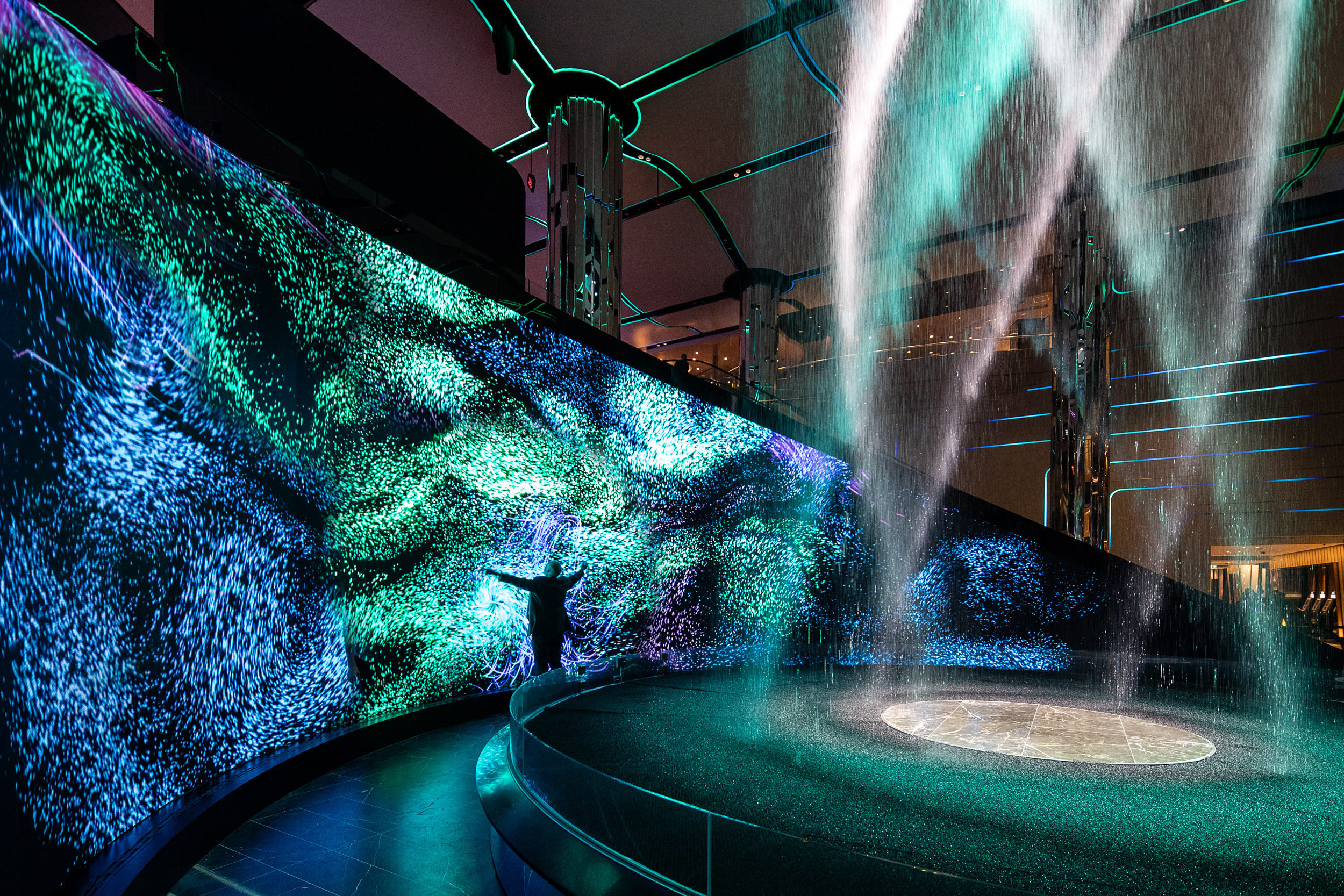 近日,澳洲娛樂巨頭The Star集團公開了他們斥巨資改造升級的悉尼酒店的全新設計。新的酒店門廳使用洲明雷迪奧系列LED顯示屏及燈條,采用沉浸式新月形顯示屏及水中顯示屏設計,將LED顯示屏與光影、水流、建筑和藝術畫廊融為一體,為賓客打造出一個充滿吸引力的互動式體驗空間。