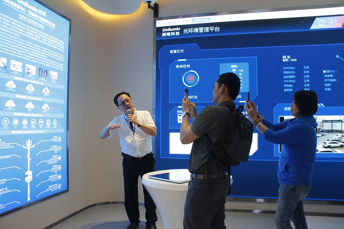 參觀展廳期間,考察團對于洲明智慧大屏及智慧路燈產品表現出濃厚的興趣,并對洲明的技術實力、科研創新和市場拓展能力均表示了高度的贊賞。