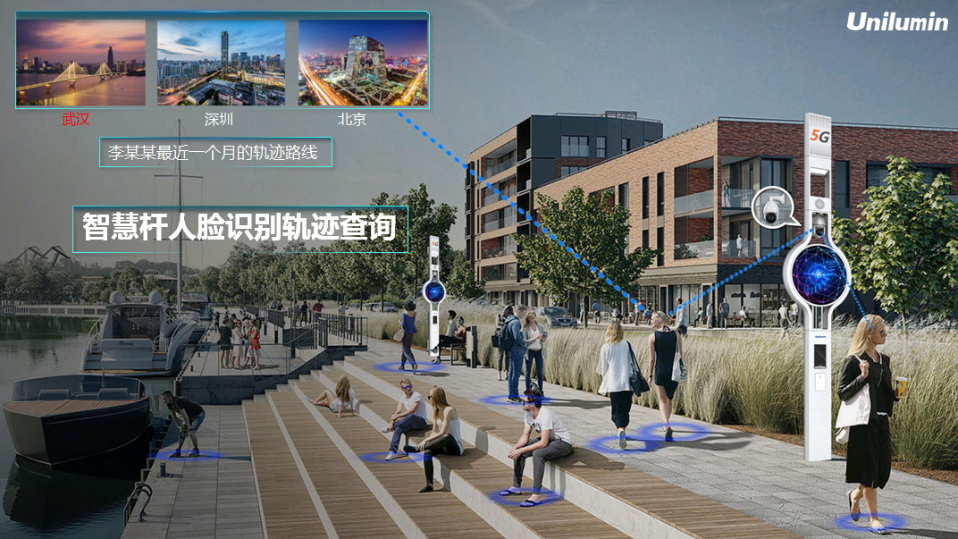 在疫情防控期間,洲明智慧桿成功開發出人臉識別測溫、人臉識別軌跡查詢功能,實現了在5G微基站、環境信息釆集、安防監控、智慧市政等多種功能基礎上的再次升級,以遠距離、非接觸、大面積、多目標、快速篩查的防疫手段,為各地信息化精準防疫提供了切實幫助。