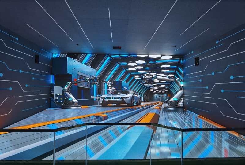 當訪客步入展示中心,映入眼簾的洲明大屏格外引人注目。兩塊小間距大屏以相互垂直的巧妙設計,不僅為科技園各類宣傳訊息展播、接待演示提供了充滿創(chuàng)意的可視化平臺,也為訪客提供了更舒適、更沉浸的觀看體驗。