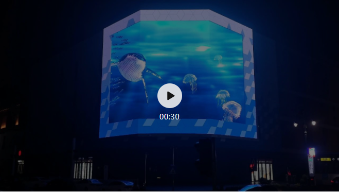 洲明還為大屏創作了多套酷炫的裸眼3D視頻內容。其中,有色彩斑斕的海底世界、科幻十足的星球降臨、活力動感的舞蹈……絢麗的色彩、逼真的畫面、沉浸式的裸眼3D體驗讓人難分虛實,長久駐足,深深沉迷于視顯科技帶來的震撼與夢幻。