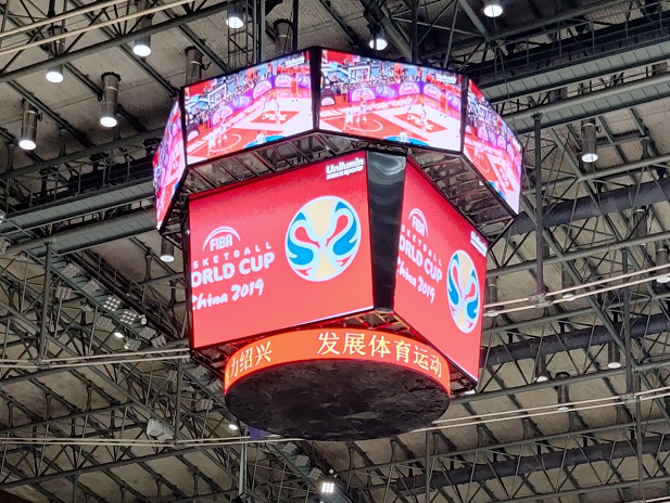 洲明體育為場館提供的總計近700平米的雙層繞場環形屏絢麗奪目。作為賽事計時計分、贊助商廣告展播及觀眾互動等環節的重要交互媒介,環繞全場的環形屏通過高清、細膩的顯示畫面,營造出沉浸式的賽場氛圍,讓球館內的球迷、球員與激烈的賽事融為一體,共享體育帶來的激情與歡樂。