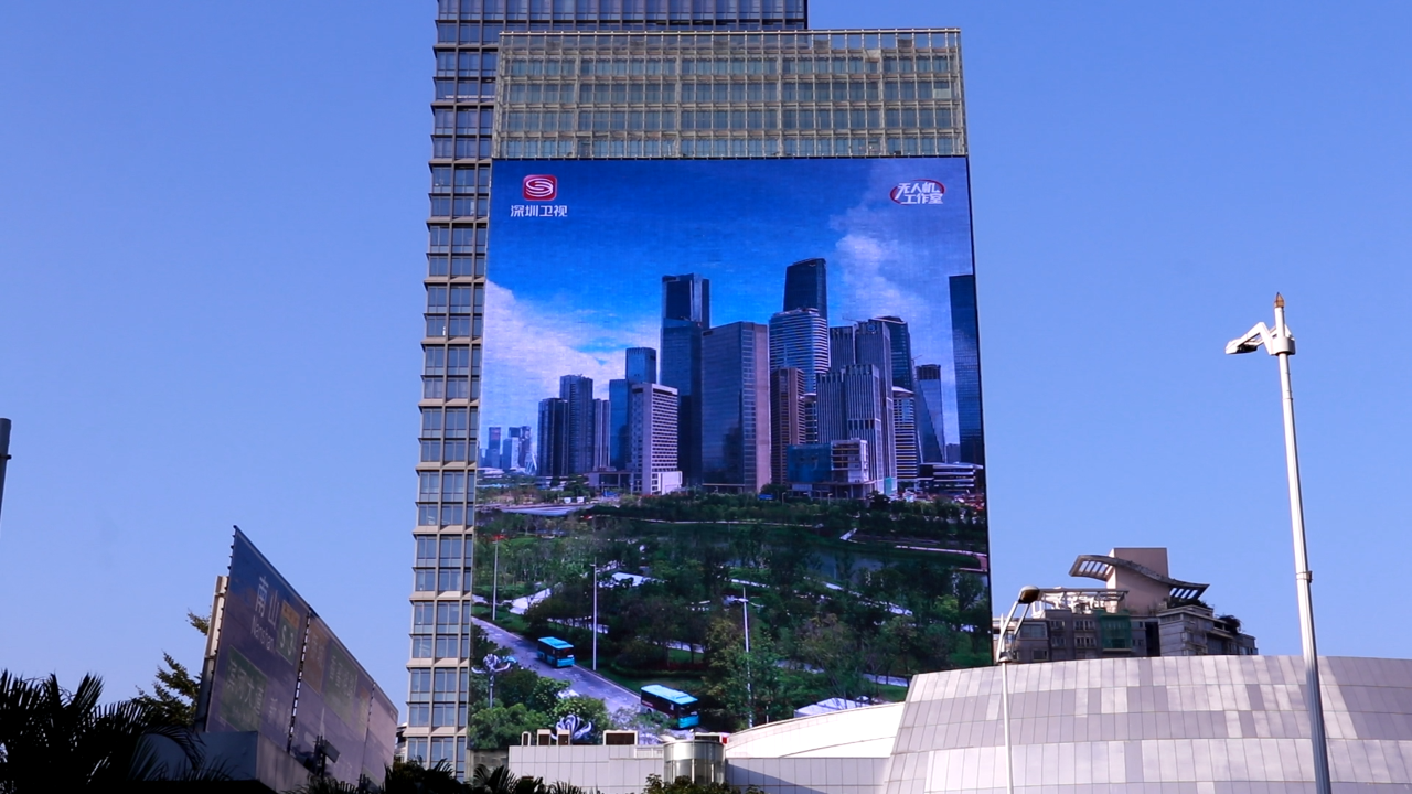 ▲深圳廣電大廈。4501㎡“灣區(qū)之窗”,亞洲大戶(hù)外顯示屏,洲明科技出品。