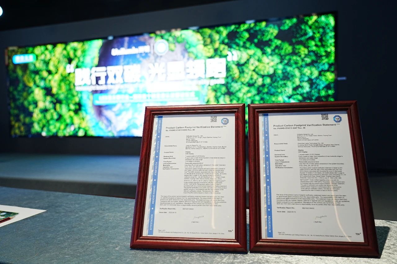 2023年4月24日,LED顯示屏行業(yè)—國(guó)際首個(gè)碳足跡認(rèn)證頒證儀式以“踐行雙碳,光顯領(lǐng)跑”為主題在洲明集團(tuán)總部召開。TUV南德意志集團(tuán)(以下簡(jiǎn)稱"TUV南德")為洲明頒發(fā)碳足跡核查聲明,洲明成為行業(yè)首家、也是國(guó)際上首個(gè)取得TUV南德LED顯示屏碳標(biāo)簽的企業(yè)。