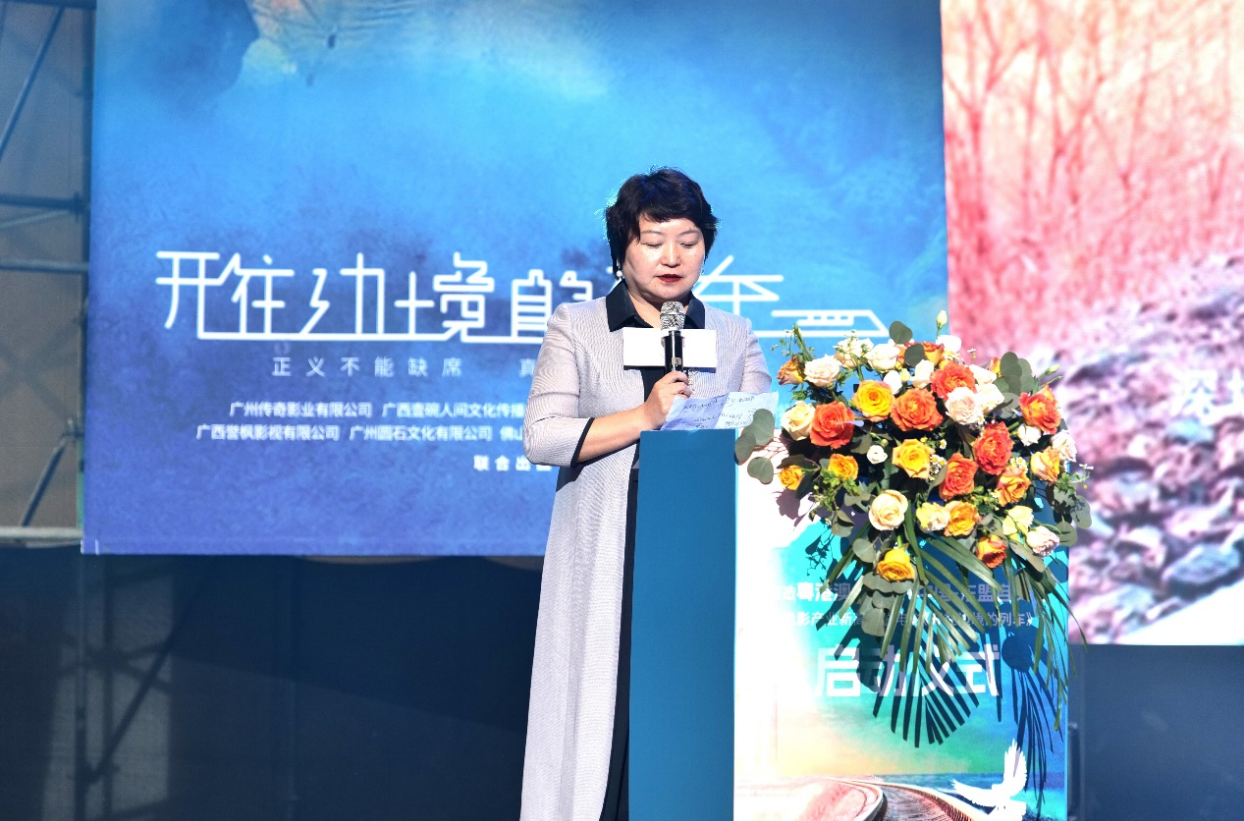 在致辭環節,主辦方代表表示,在這個特殊的日子,中國電影史將會記住這個廣州增城電影行業的新高地。這片高地連接粵港澳大灣區和中國東盟自貿區,以全球最先進的電影拍攝技術和現在國際國內最頂尖的電影人才為支撐。以中國夢為核心價值,通過全新的電影語言,向世界講述中國故事和傳播好中國聲音。電影《開往邊境的列車》是這片高地的首發列車,從粵港澳大灣區始出,穿越中國東盟自貿區,駛向世界。
