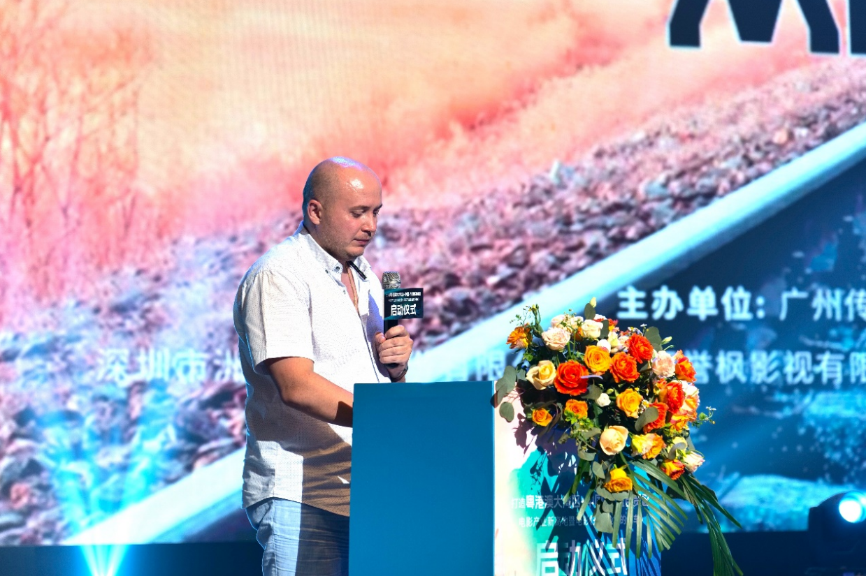 制片人劉昆崳在致辭中表示,將電影產業與科技創新、文化傳承緊密結合,打造新的產業高地,這是電影《開往邊境的列車》一次重要的探索和實踐。他在現場分享了電影《開往邊境的列車》的創作歷程、故事背景和精彩劇情,希望在粵港澳大灣區和中國-東盟自貿區這片充滿活力和機遇的土地上,可以通過這部電影,傳遞出濃濃的友誼和合作精神,為推動中國文化走向世界貢獻一份力量,共同推動中國電影產業走向世界舞臺,讓電影成為連接世界的橋梁,讓中國文化閃耀在世界舞臺上!