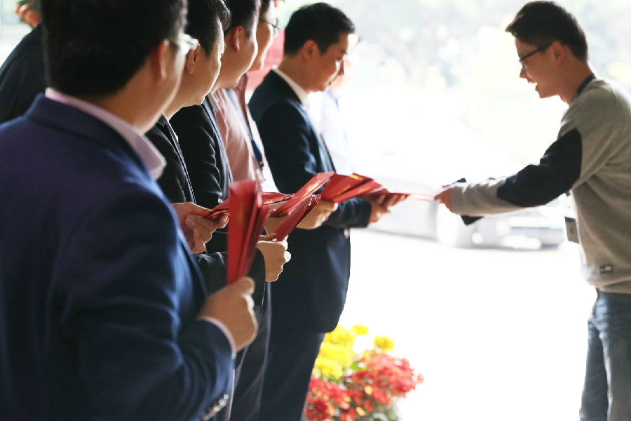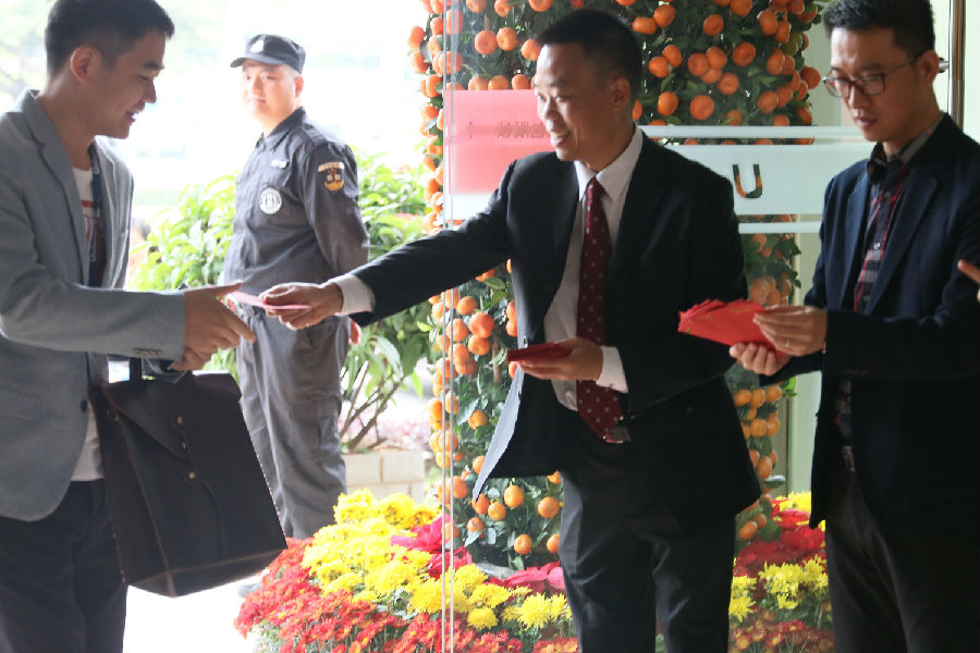 員工是企業的根基,一大早,公司全體領導在林洺鋒董事長的帶領下在公司大門口列隊迎接每一位回歸工作崗位的洲明家人們并派發利是,表達對員工歸至如家的溫暖關懷!