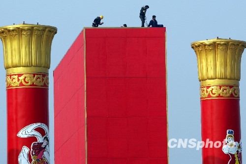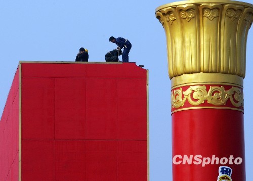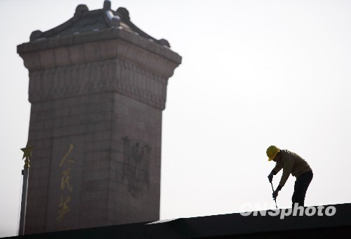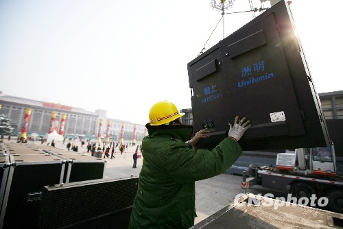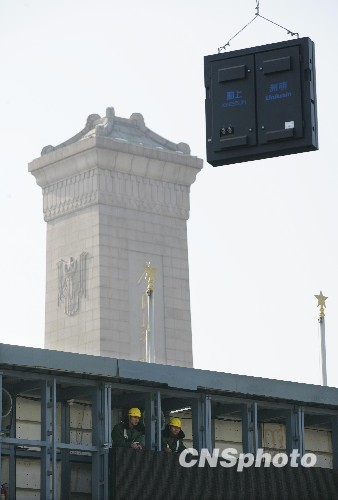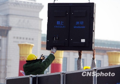 11月13日,位于天安門廣場的四塊巨型LED顯示屏開始拆除,這四塊LED顯示屏在完成建國六十周年大慶任務后走下了舞臺。據(jù)工作人員介紹,拆除工作從當日凌晨開始,全部移走要到下周一凌晨左右。中新社發(fā) 劉震 攝 轉(zhuǎn)自:http://news.cctv.com/china/200913/103984.shtml